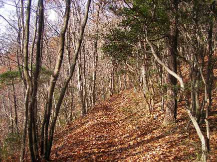 雑木や杉林の登山道は厚い枯葉のじゅうたんで足に優しく、秋の終わりの余韻たっぷり、冬へのバトンタッチにイヤイヤをしています。