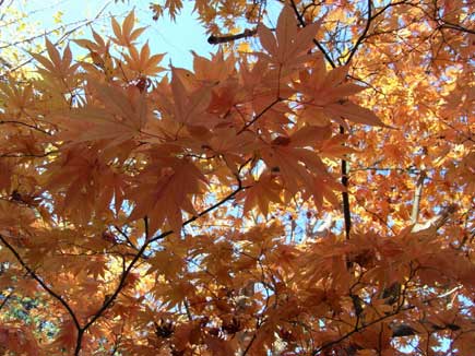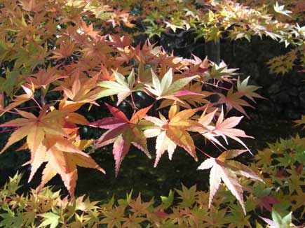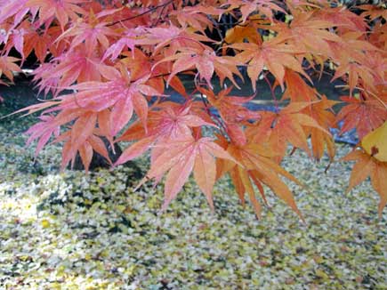 いつも張り詰めた空気が漂って、燃えるように赤いモミジが何故か淋しげです。華やかさを感じさせない紅葉。