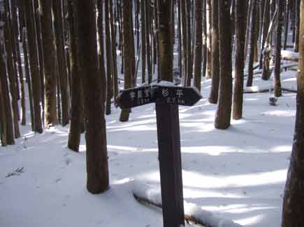 杉平峠の広大な杉林も手入れが行き届いている。傾斜が緩んで歩きやすくなる。
