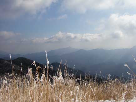 ススキとカヤトの山頂は展望バツグンで曽爾の山や高見山系の山々が競うように並ぶ。