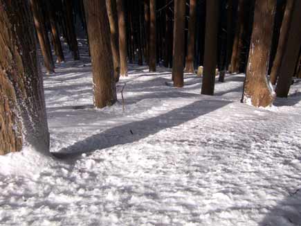 林道歩きよりもう一度学能堂山を通り樹氷のトンネルを歩く方が断然うれしい。