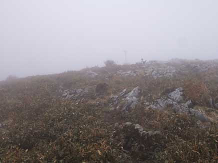 西南尾根は展望尾根のはずが、今日はガス立ち込めて、