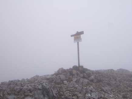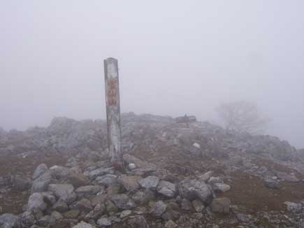最高点も山頂も経塚山もすべて強風、ガスの中となった。