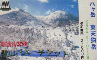奈良山友会から例年1月に雪山バスが企画されます。今年は八ヶ岳 東天狗岳です。