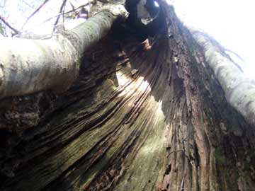 面白い木に出合いました。大木ですが中がすっかり抜けて空洞で空が見えます。それでも生きています。逞しい!