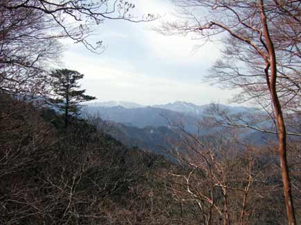 心癒される美林が続き、木の間越しにずっと美形の白鬚岳が目立ちます。見渡せば大台ヶ原、弥山、山上ヶ岳は真っ白、稜線上に見える馬ノ鞍峰に雪はないようです。
