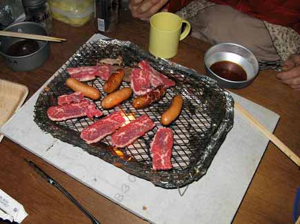 集合地に着いてビックリ〜&ギョーテン〜です。車の後部にはテント、バーベキュー用品、食材はもちろん、発電機、蛍光灯、延長コード、こたつ、こたつふとんまで積んであり、まるで夜逃げ〜みたいでした。
