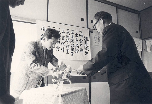 式典の開始です。まだまだ団地内に空き地の多かった頃でした。