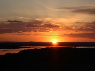 左上、左中、左下、右下と順に沈んでいく太陽。