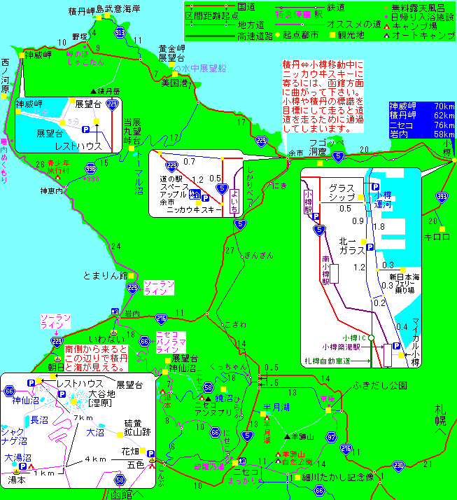 本当に綺麗な積丹とニセコの観光地を地図にまとめてみました。 道を走るだけで素晴らしい景色がたくさん目に飛び込んできます。