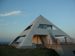 道の駅はなやか小清水の近くにある、ピラミッド型の建物 西に濤沸湖と砂丘、東には遠く知床連山まで見渡すことが出来る展望台。 |