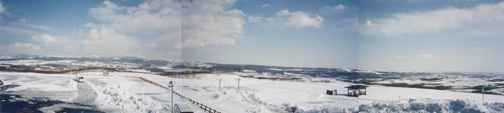 | 釧路発の定期観光バスで来た、冬の900草原。広々とした、どこまでも白い景色が続いています。風が吹き抜けて、かなり寒いけど(^^; |