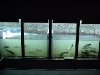 左:サーモンパークのタワー イクラがちょこんと乗ってます(笑) 左下:ちょっとした水族館風になってる。 下:これがメインかな。 鮭がうようよ。 熊じゃなくても取りたくなる!?(笑) ’01秋の北海道一人旅 |