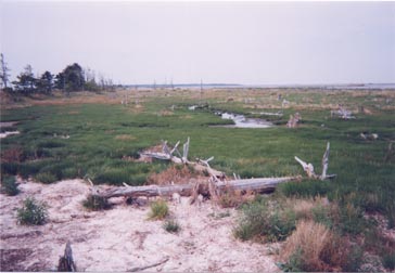 こちらは道路沿いから撮った トドワラの遠景です。 何回も足を運んでいますが、 目に見えて風化していますね。 ’01秋の北海道一人旅 |