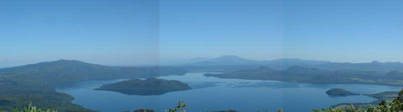 | 津別峠展望台より、屈斜路湖全景。屈斜路湖や周りの山々の展望は美幌峠より良いかもしれない。島や和琴半島もばっちり見えますね(^-^) |